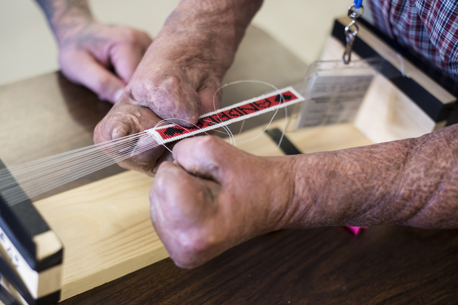 Fresno resident and Mono Indian, Dale Tex, helps an inmate with his design at Valley State Prison in Chowchilla, Calif., on Wednesday, April 19, 2017. The program is made possible through a partnership with the California Department of Corrections and Rehabilitation and the California Arts Council. Once a week inmates work side by side to create the Native American jewelry.
