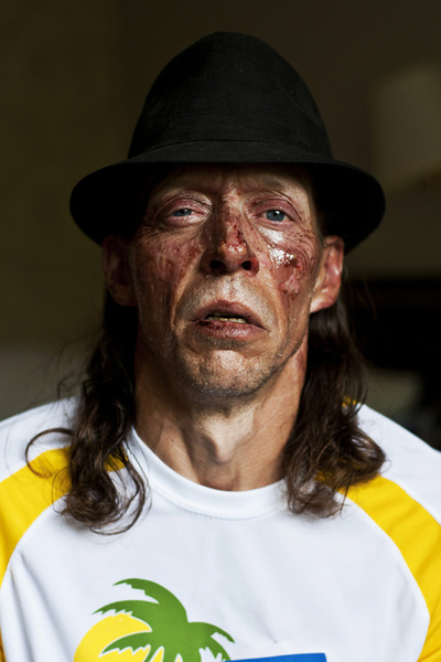 Sidney Thurston Sr. sits in his hotel room Wednesday June 6, after his family's camping trailer caught fire at Pleasant Lake County Park and Campground on Sunday, June 2. Thurston Sr. suffered burns to his face and hands. (Andrew Kuhn | MLive.com)