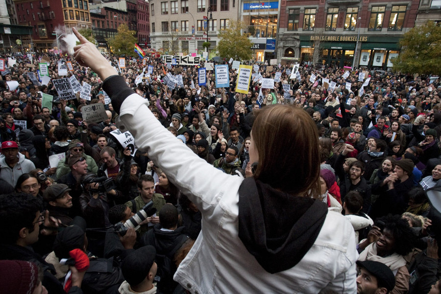 Occupy protesters meet at Union Square in New York City Nov. 17, 2011. The protesters also gathered in Zuccotti Park earlier in the day to protest during the two month anniversary of Occupy Wall Street. (Andrew Kuhn/Staff Photographer)