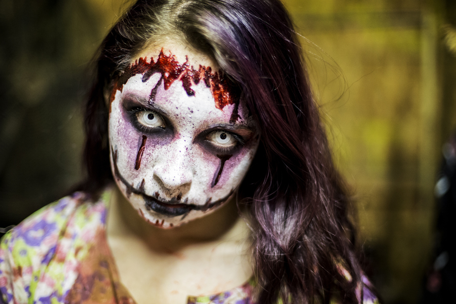 Kayla Shock, 17, of Turlock, at Frightmare Farms in Plainsburg, Calif., Thursday, Oct. 22, 2015. This is Shock's first year working at Frightmare Farms.